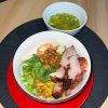 Pork broth, wonton egg noodles, pork and shrimp wontons, char siu pork, bok choy.