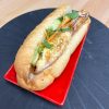 Crispy Vietnamese baguette, banh mi toppings, slowly cooked beef brisket, and hoisin sauce. Served with a side of pho broth.